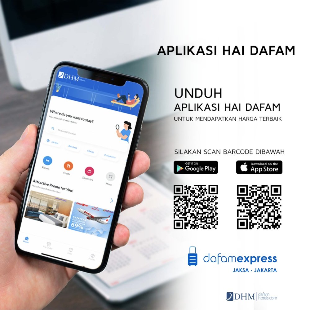 Untuk pemesanan promo menarik ini, hanya dapat dilakukan melalui aplikasi Hai Dafam. Dimana para tamu sudah bisa melakukan memesam kamar mulai dari tanggal 08 – 19 Agustus 2021 dengan periode menginap untuk mulai tanggal 15 – 20 Agustus 2021. Dengan aplikasi Hai Dafam, kemudahan memesan kamar Hotel dan Villa, di seluruh jaringan Dafam Hotel Management (DHM) kini ada dalam genggaman Anda serta Jaminan ketersediaan kamar dan harga yang menarik dan bersahabat, Aplikasi Hai Dafam dapat di unduh melalui Google playstore maupun Appstore.