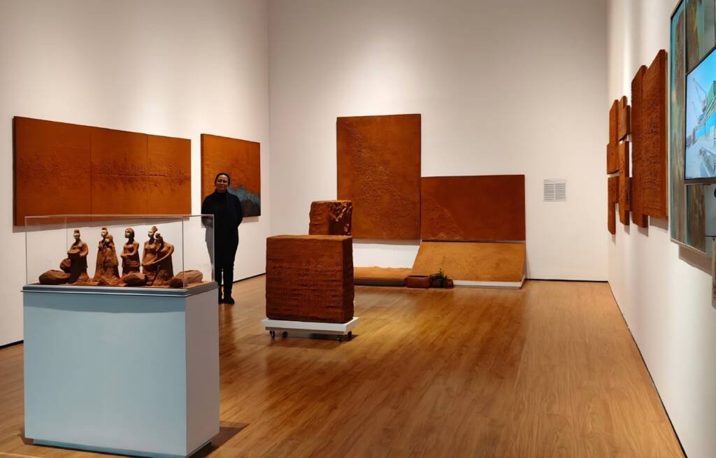 Jejak fosil binatang laut dan sulur botani yang tercetak pada panel-panel kanvas tanah menjadi arsip visual atas sejarah yang tak ingin dilupakan. Retakan pada terakota, menurut dia, adalah metafora luka ekologis yang ditinggalkan oleh kerakusan manusia.