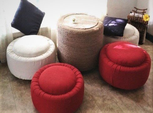 Ternyata ban bekas bisa dimanfaatkan menjadi kursi dan meja, dengan cara yang tidak terlalu sulit. Nah, untuk membuat meja gunakan 2 ban. Jika tali paracord terkesan kasar dan warnanya kurang bagus, bisa memakai kain polos untuk menutupi permukaan ban. Cara membuatnya lebih mudah, karena kita tidak perlu melilitkan tali dari bawah sampai atas. Selanjutnya, tambahkan bantal diatasnya agar lebih empuk. [Agus Sukmadi]