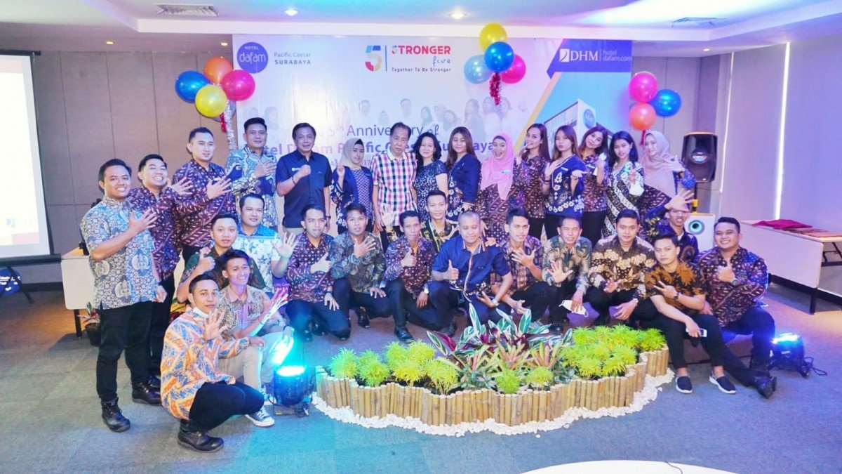 Tepat di tanggal 9 Agustus 2022, Hotel Dafam Pacific Caesar Surabaya merayakan hari jadinya yang ke-5. Di hari anniversary kali ini Hotel Dafam Pacific Caesar Surabaya mengambil tema 5TRONGER Five dengan tagline Together To Be Stronger. Di usianya yang ke-5 tahun ini Hotel Dafam Pacific Caesar Surabaya berbenah diri menjadi lebih baik guna memberikan pelayanan yang terbaik bagi para tamu. Kebersamaan superteam yang lebih kuat (stronger) yang dijiwai dengan corporate value DAFAM akan menginspirasi terciptanya inovasi tanpa henti dalam produk dan layanan dalam menghadapi kompetisi ke depan.