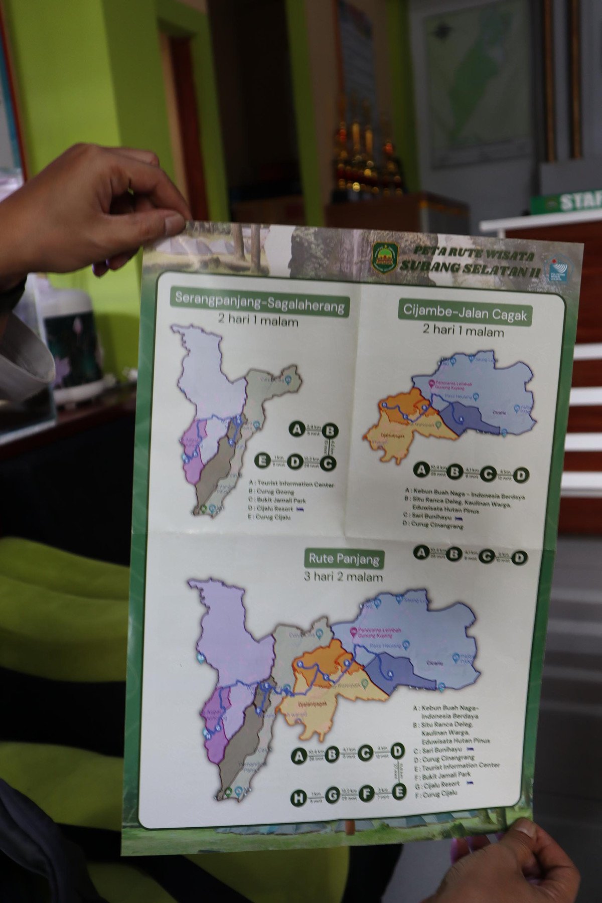 “Alhamdulillah kami telah menyelesaikan dan menyerahkan peta rute wisata Subang Selatan kedua ini kepada beberapa perwakilan perangkat desa wisata. Sebelumnya, kami sudah menyelesaikan untuk empat kecamatan yaitu Tanjungsiang, Cisalak, Kasomalang, dan Ciater,” terangnya.